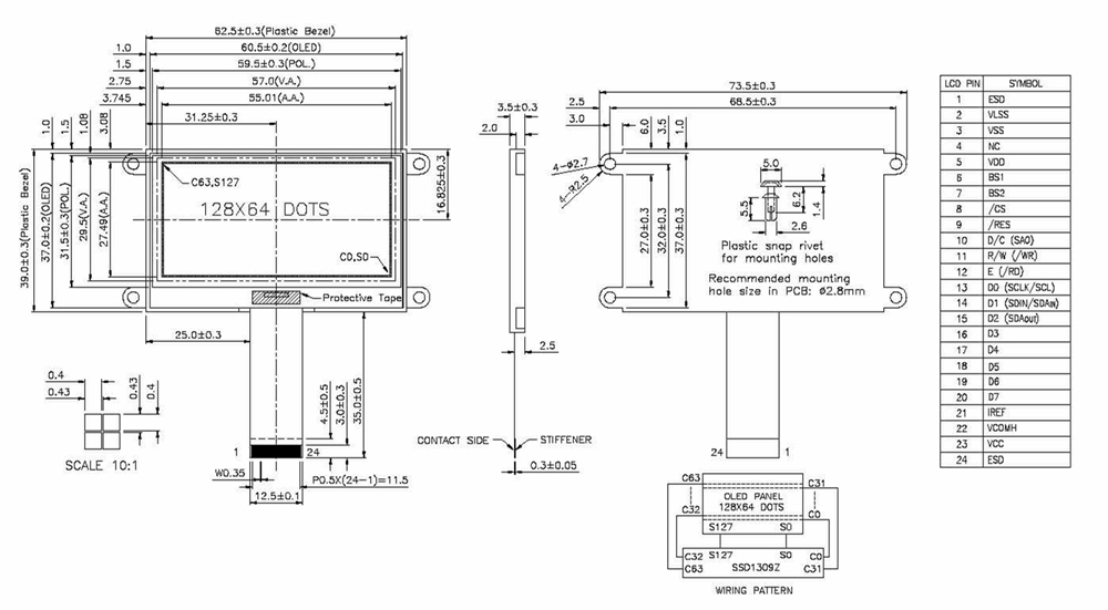 128*64 1.54” OLED Display DG-12864A-1309 →