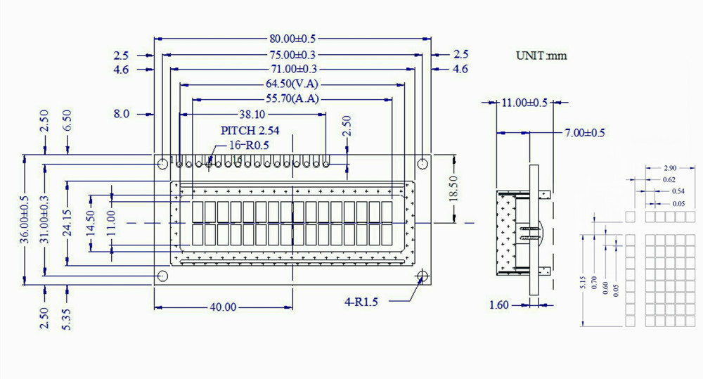 Module size (W*H*T): 80.0*36.0*13.0 mm