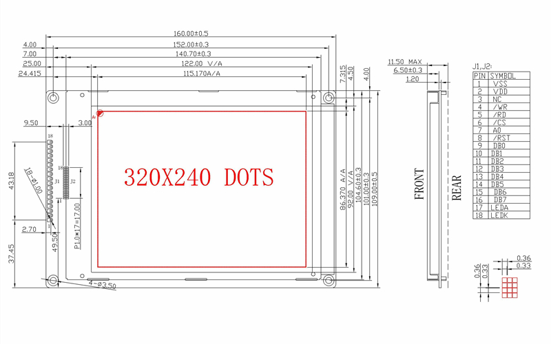 Dot size: 0.33x0.33mm