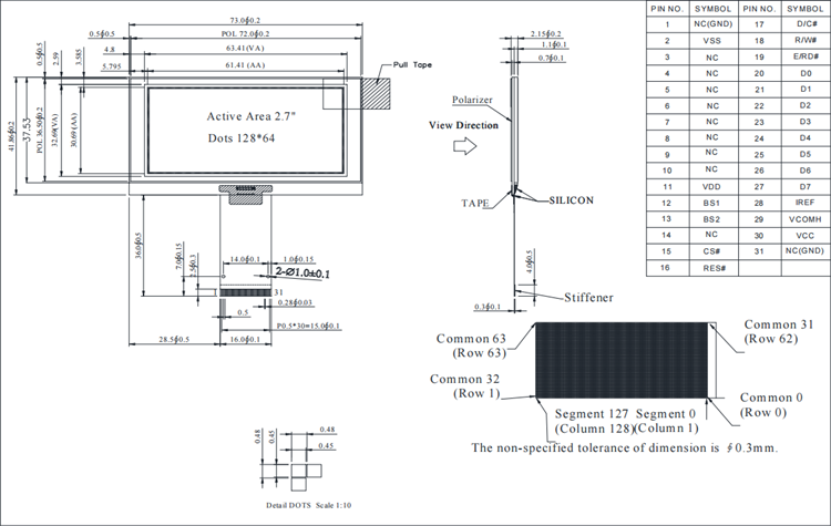Module dimension: 73.0 × 41.86 × 2.15 mm